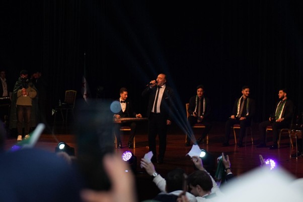 وتضمّن الحفل برنامجًا ثقافيًا وفنيًا متكاملًا، شمل عروضًا مسرحية جسّدت مسيرة السوريين بين القمع والتهجير ثم استعادة الإرادة، إلى جانب أعمال بصرية حيّة، وأناشيد وطنية، وقراءات أدبية، وأفلام قصيرة وثّقت مسار الثورة السورية منذ انطلاقتها وحتى لحظة الانتصار. وقدّمت هذه الفقرات الحكاية السورية بوصفها تجربة إنسانية جماعية، لا مجرد حدث سياسي عابر.